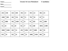 In this comparing numbers worksheet, students compare 20 pairs of 1, 2 and 3-digit numbers. Students identify each pair as greater than or less than.
