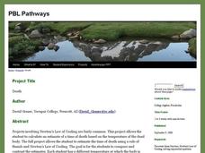 Verify the rule of thumb for finding the time of death. The project-based learning task asks pupils to determine when the rule of thumb process of finding the time of death is appropriate. Learners develop a function for the rule and...