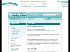 Students explore sea life. In this cross curriculum fine arts, science, and P.E. "dolphins" lesson, students sing songs and play games about dolphins, perform water experiments, create mosaics, and use their five senses to explore sand...