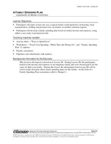 Students investigate family expenditures. In this family budget lesson, students examine the wages and expenditures of family and then create a monthly budget for the family to follow.