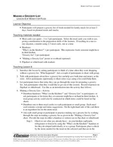 Student examine the benefits of making grocery lists. In this family budgeting lesson, students participate in an activity that requires them to create grocery lists for selected meals that families may share.