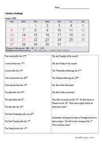 For this math worksheet, students solve the problems that are related to reading and interpreting the calendar for the different parts.
