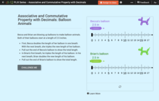 Commutive and associative properties are the focus of a five-question interactive. Dealing with decimal multiplication and addition, mathematicians solve multiple-choice and true or false questions using a model that moves balloons along...