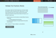 Five questions make up an interactive designed to boost the multiplication of fraction skills. An assortment of color-coded fraction blocks assists participants to find the right answer. Question types include multiple-choice and fill in...