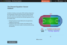 A soccer-themed interactive challenges mathematicians to solve five questions involving percent equations. Question types include multiple-choice, fill in the blank, true or false and a discussion. A color-coded stadium with movable...