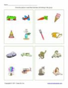 In this classification worksheet, learners examine the objects pictured in 4 sets. Students identify the picture that does not belong in each of the sets.