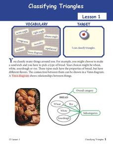 Young mathematicians explore the world of three-sided shapes in this lesson on the different types of triangles. Starting with a general introduction to classification using Venn diagrams, children learn how to categorize triangles...