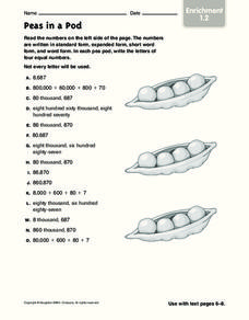 In this place value worksheet, students learn three ways to write a number: expanded, standard and word form. Students solve 5 problems in which they write numbers in different ways.