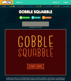 A Thanksgiving-themed interactive boosts addition, subtraction, multiplication, and division facts. Using the keyboard's arrows, players navigate a turkey through a maze, gobbling up as many berries as possible without getting tagged by...
