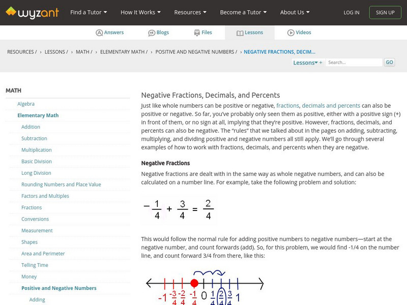 Demonstrates how to perform arithmetic operations with negative fractions, mixed numbers, decimals, and percents. Includes ten practice questions.