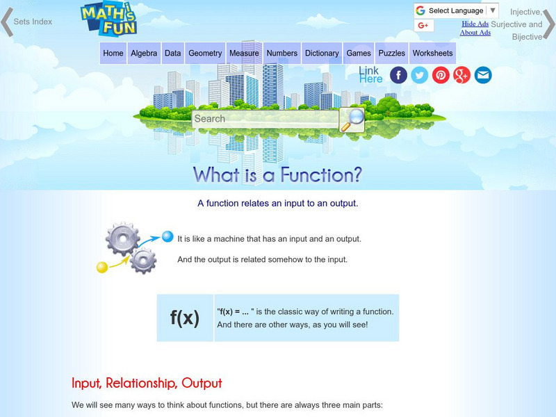 The learning resource investigates functions. Students learn about the concept by exploring definitions and examples. Topics include the vertical line test, relations, and ordered pairs.