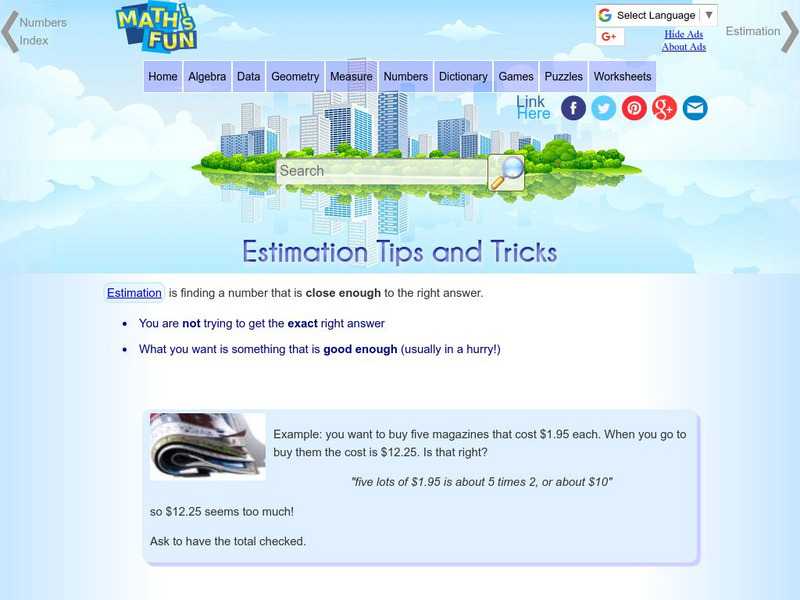Learners investigate estimation tips and tricks. The resource consists of notes about the concept, examples, and some learning games and activities.