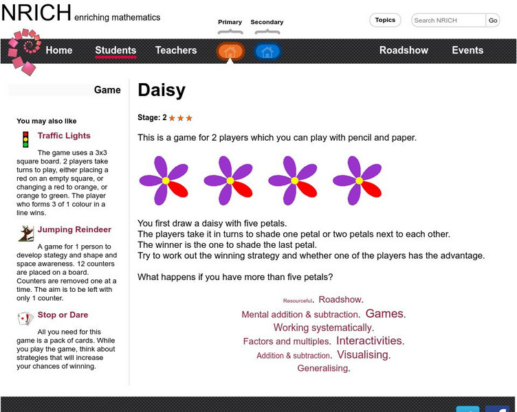 Sharpen your problem solving and strategy skills by playing this interactive game. The game's rules are simple, but play requires some thinking if you want to beat the computer. You can change the settings and see if your strategy works...