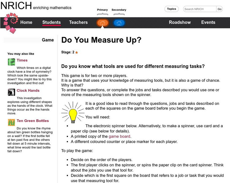 University of Cambridge: Nrich: Game Do You Measure Up?