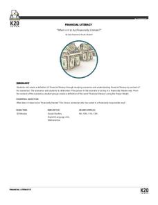 What does it mean to be financially responsible? Develop a working definition of financial literacy with your classes. Using six scenarios, learners debate financially literate actions and develop a definition based on their decisions.