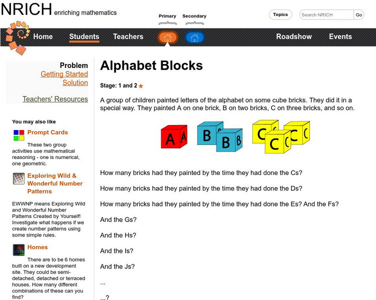 On this one page website use a table to help you organize the information so that you can solve this cube problem. When you are finished you can check your answer right at the website.
