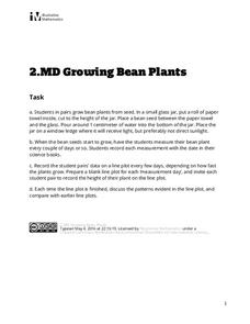 After planting a bean seed in a jar, young scientists observe the growth patterns over several days. As the bean becomes a sprout, and the sprout becomes a plant, partners measure and plot the data. They notice patterns, practice...