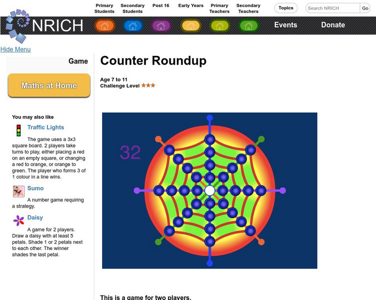 Sharpen your problem solving and strategy skills playing this interactive game, Counter Roundup. The rules are simple but the game requires some thinking if you want to beat the computer. There is a "Get Printable Page," link at the top...