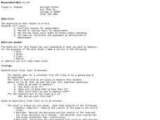 Students measure an assortment of items using metric measurements. In this measurement instructional activity, students measure using length, mass, and volume units of measurement. They convert between units. Students learn a mnemonic to...