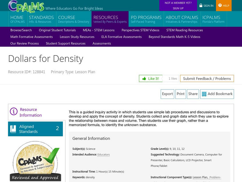 Cpalms: Dollars for Density