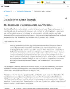 Unlike mathematics, statistics comes with a context. The author reminds teachers that data analysis involves using the context to make sense of the numbers. The article stresses good communication skills by highlighting the scoring...