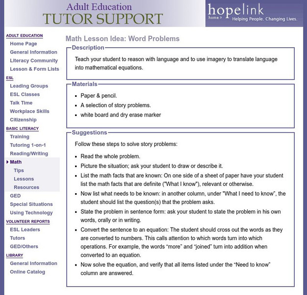 This is a resource for elementary word problems. It links to interactive and hands-on sites with videos and strategies.
