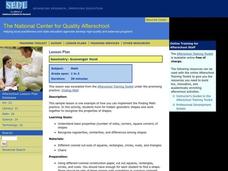 Students hunt for hidden geometric shapes and compare the properties of various shapes. In this geometry lesson, students play a game of finding squares, circles, rectangles, and ovals that have been hidden around the classroom. Students...