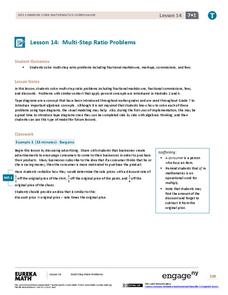 Use ratios to solve problems that are not proportions. The instructional activity has pupils solve multi-step ratio problems that involve fractional increases and decreases. The problems involve mark-ups, discounts, commissions, and...