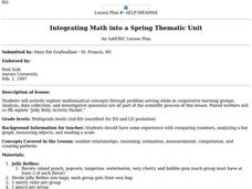Young scholars estimate, measure, compute, and create patterns using jelly beans. In small groups, they solve various calculations, place jelly beans into groups, invent a new flavor, create a pattern, and complete a worksheet.