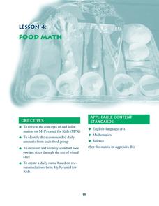 Students brainstorm healthy food choices. In this health science lesson, students calculate how much of each food group they need daily. They plan a menu based on the "MyPyramid for Kids" food guide.