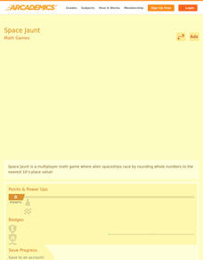 Multiplayer math game where alien spaceships race by rounding whole numbers to the nearest 10's place value.