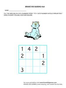 In this sudoku worksheet, students fill in a sudoku 4x4 grid. Students fill in 9 blanks to this sudoku grid with numbers 1 through 4.
