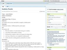 Students complete a Sudoku puzzle using their math skills. After listening to the rules of Sudoku and observing a demonstration, students use the process of elimination and other methods to complete puzzles. They explore how the...
