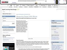 Students record each other running, walking, throwing a ball, or doing a similar activity for a set distance. They import the video clips into iMovie. They compute how long it took in miles per hour.