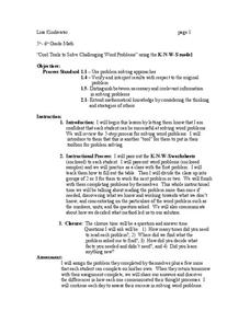 Fifth graders practice solving word problems using highlighted strategies. In this word problem instructional activity, 5th graders brainstorm and use words as clues that indicate the math operations that will be used to solve...