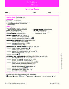 Students participate in a lesson that covers the genre of narrative poetry. They examine the elements of a narrative poem while focusing upon the characterization. Students compare and contrast the characters while analyzing their...