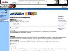 Students demonstrate how to use spreadsheets as a tool for analyzing, visualizing and solving mathematical problems. Students obtain fundamental grasp of cubic equations and other polynomial equations.