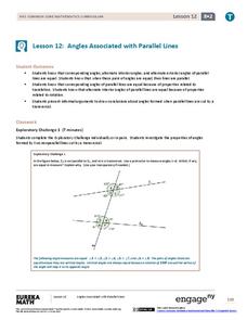 Explore angle relationships created by parallel lines and transversals. The 13th lesson plan of 18 prompts scholars use transparency paper to discover angle relationships related to transversals. Learners find out that these angles pairs...