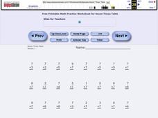 In this multiplication facts worksheet, 5th graders solve 40 multiplication facts with sevens. Each problem has seven multiplied by another one-digit factor.