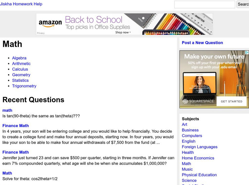 The math section of this popular Homework Helper site features links to elementary math, algebra, geometry and other related resources.