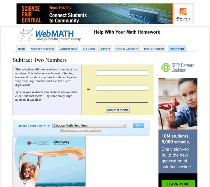 Discovery Education: Web Math: How to Subtract Two Numbers
