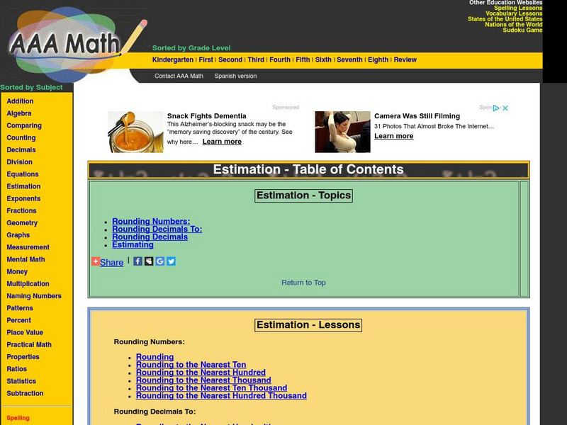 Improve your estimation and rounding skills with these interactive games that are challenging and fun. Excellent skills practice for rounding, estimating sums and differences, and front-end estimation. Links to lesson plans, teacher...