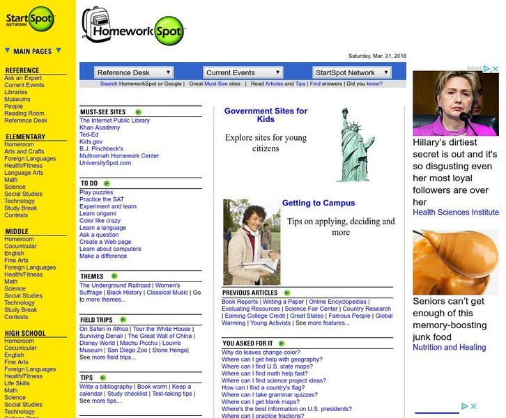 This site is provided for by DiscoverySchool.com. A ten-year-old boy and his father found over 625 links to educational sites. Need help with homework ask B.J.