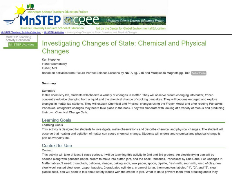 Serc: Investigating Changes of State: Chemical and Physical Changes