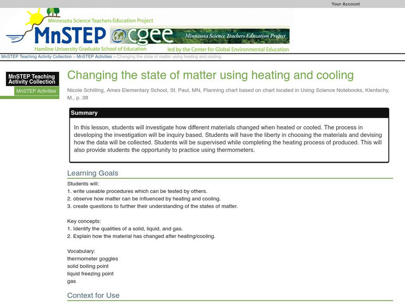 In this lesson, young scholars will investigate how different materials changed when heated or cooled. The process in developing the investigation will be inquiry based. Students will have the liberty in choosing the materials and...