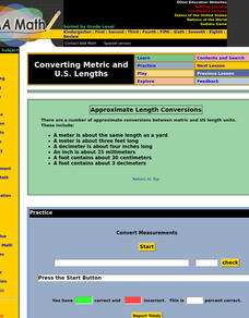 Students convert between metric and customary units of length in a series of self-check exercises and timed learning games.