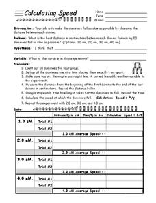 Fourth graders complete an experiment on calculating speed. In this speed calculation lesson students complete an activity in which they have dominoes fall as slow as possible.
