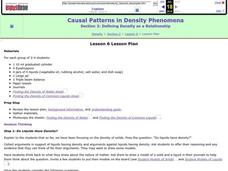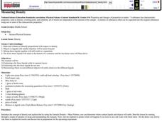 Learners find the mass, volume, and density of various objects. In this density measurement lesson plan, students observe how same-sized objects can have different masses, then use water displacement to find the density of each object...