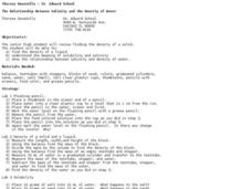 Students explore the causes of differences in density. Students choose objects, measure the mass and volume, and calculate the density of each. They perform additional density experiments to model atoms and their correspondence to...