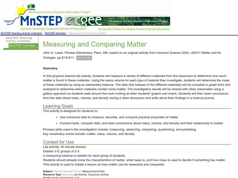 For this activity, students will measure a variety of different materials from the classroom to determine how much matter is found in these materials then determine the mass of these materials using the same volume for each. The data...